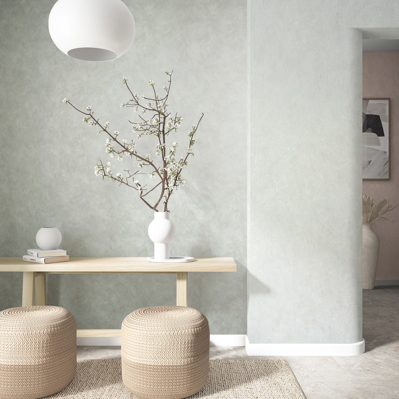 Õrna krohvi meenutava tekstuuriga tapeet on väga efektne, mõnus pehme toon loob rahu ja hubasust.